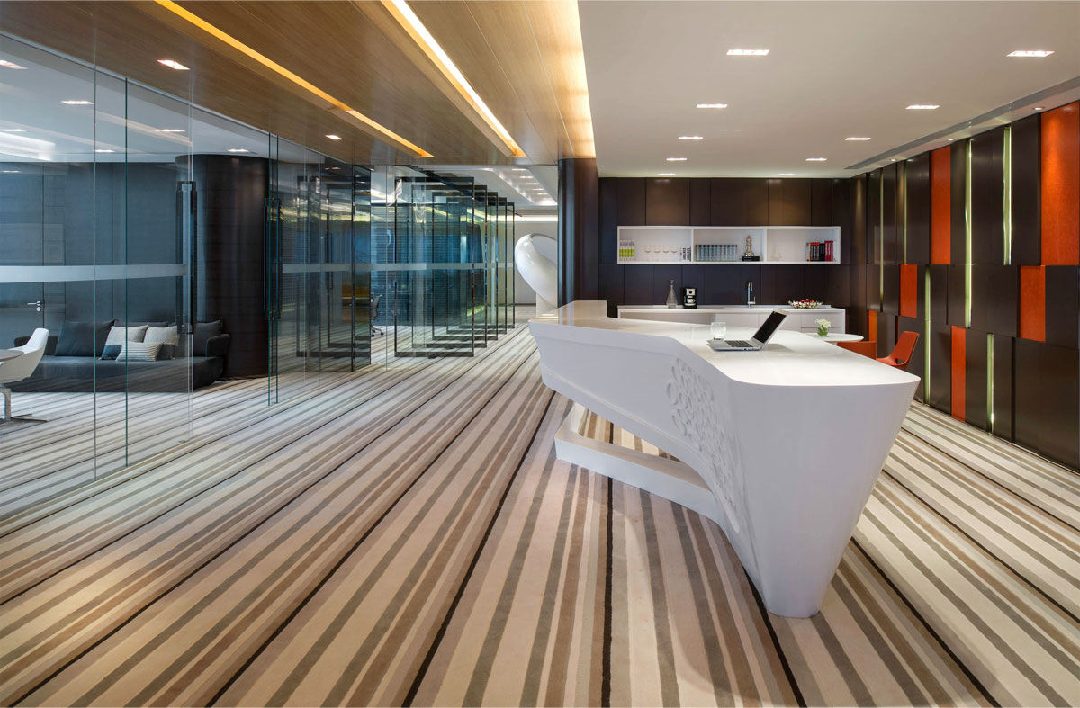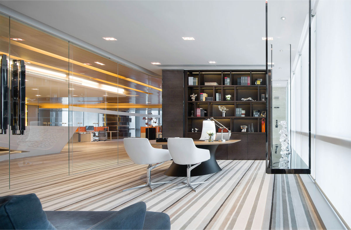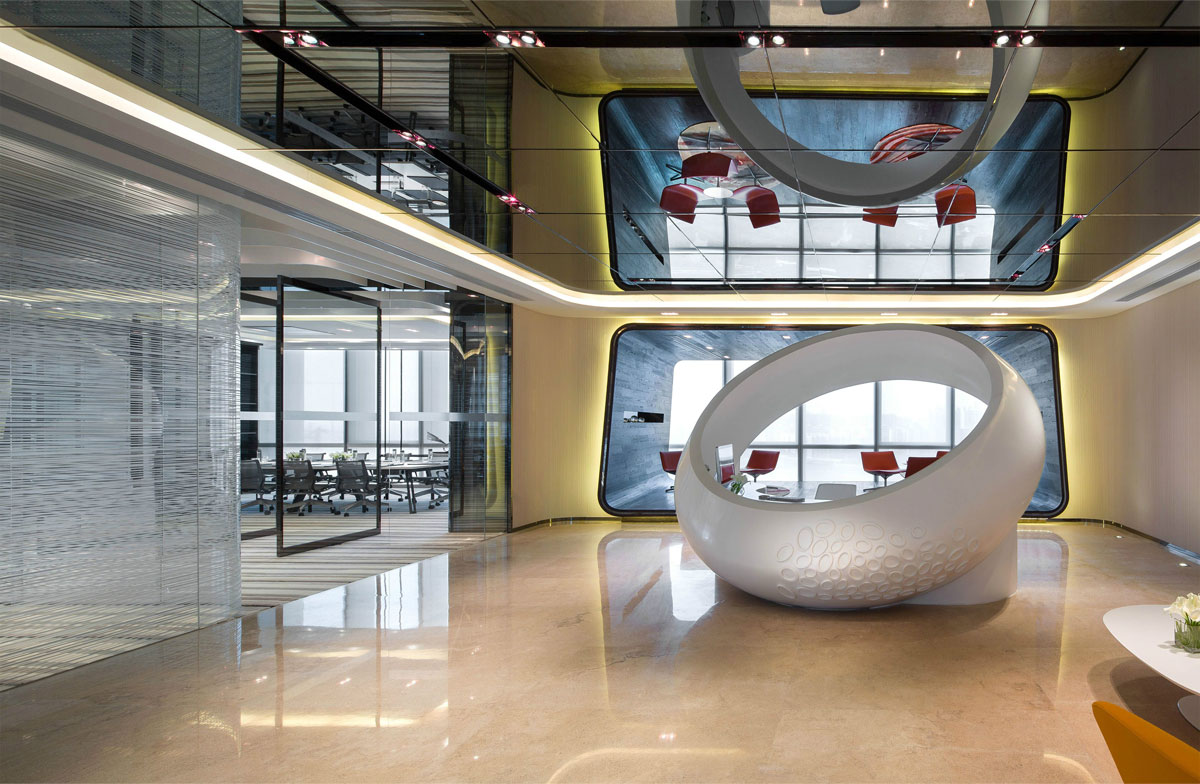 设计理念: 华夏天合科技室内装修效果图设计元素均交织凝聚于行云流水的曲线流动空间,设计表现形式不受拘束,每个空间都有自己特殊的弧度,致力于搭建“创新+智能+生态”的办公环境。
