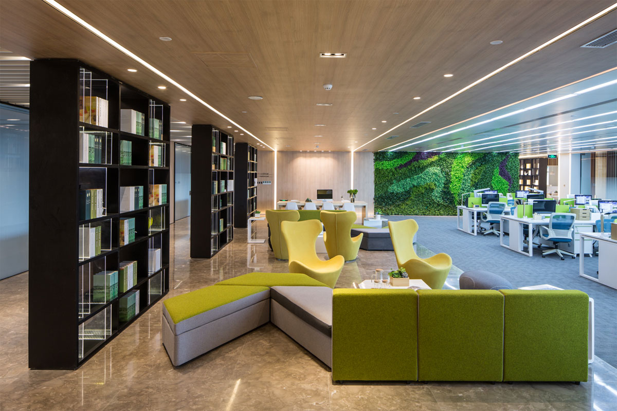 北京伟伯康科技发展有限公司室内设计装修效果图设计最大的初衷是:“ 让人在办公环境里面很惬意地体会自然 ”。以此来创造一个生态型的,能跟自然有一定互动的园区,由生态性来创造部分的微气候。
