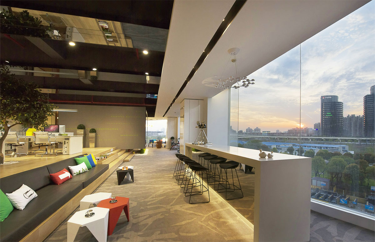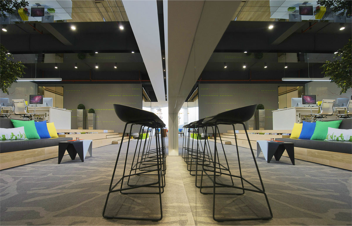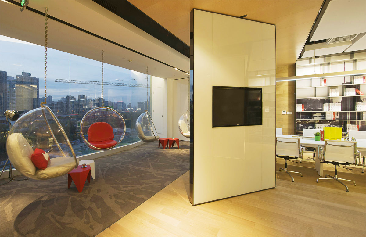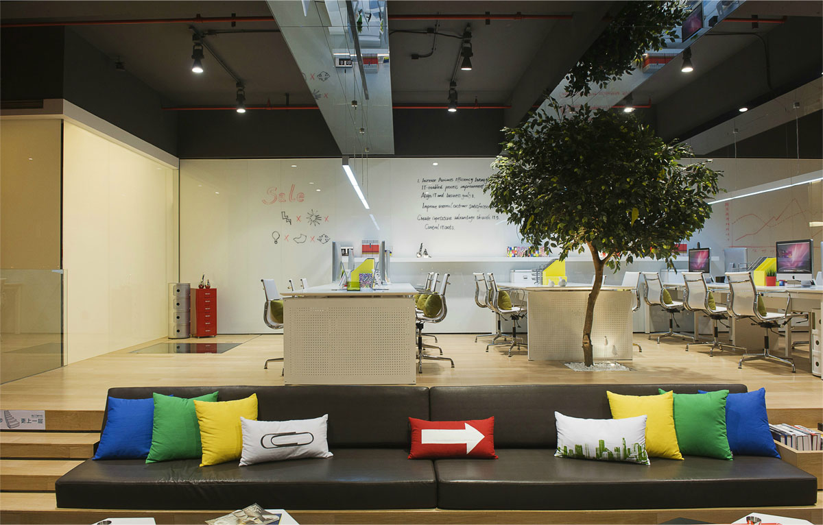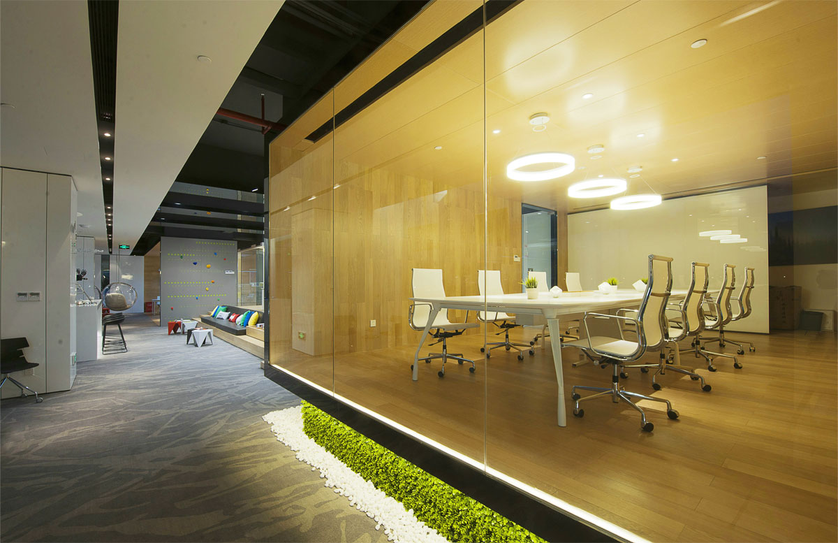 设计说明:北京爱康科技室内设计装修效果图,突出以人为本,重点突出整体视觉体验感和舒适感,又彰显了企业的整体文化,美观大气又不失舒适。