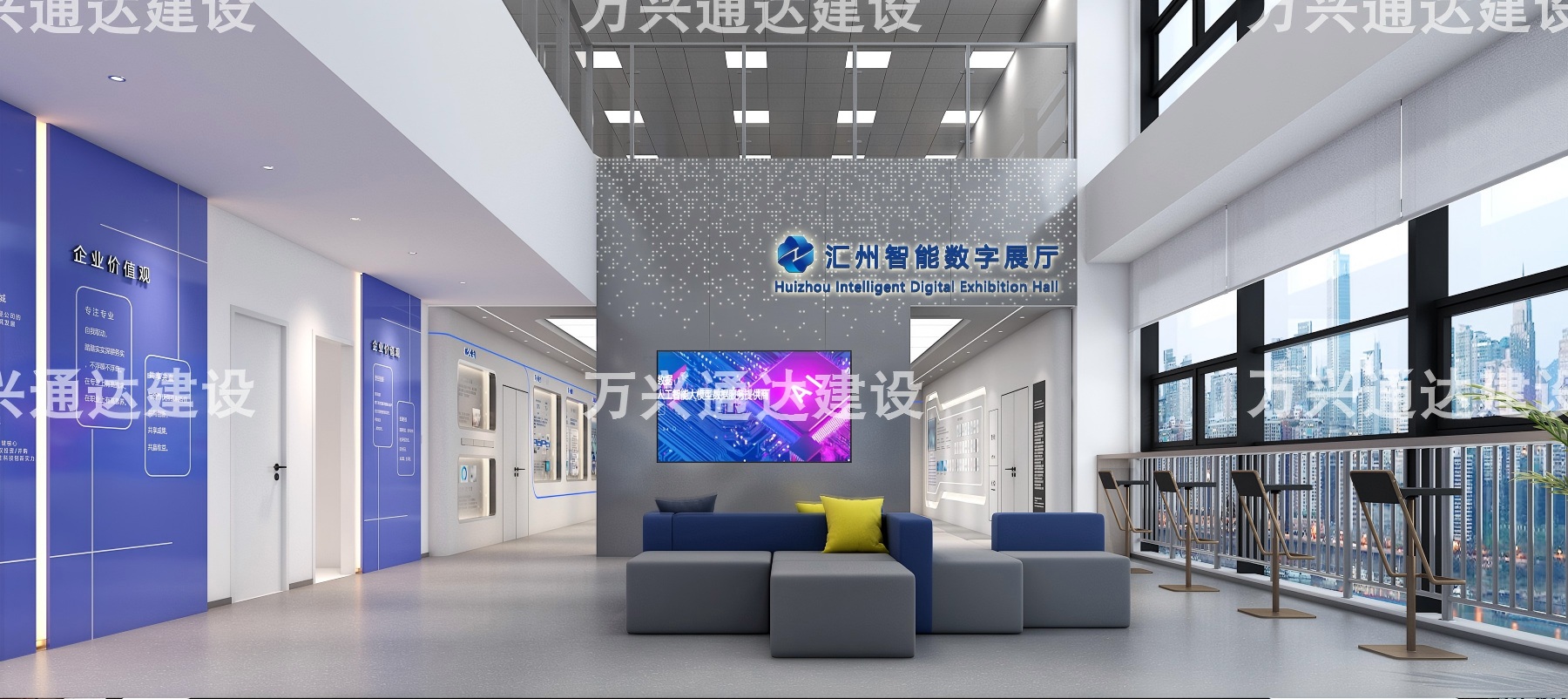 设计理念:智能数字展厅以科技感、品牌化、人性化为核心设计理念,采用白灰主色调搭配科技蓝点缀,以极简现代的空间语言、层次化智能光影与通透开阔的布局,打造契合智能制造属性的未来感氛围;以清晰的参观动线串联品牌形象、发展历程、产业实力与使命愿景,实现企业价值的沉浸式传递;同时融入休闲洽谈区、自然采光与模块化展示结构,兼顾商务接待、内容迭代与长期运维需求,打造集品牌展示、文化传播、商务洽谈于一体的现代化数字展厅。