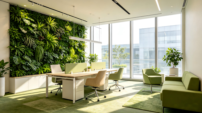 在“双碳”政策驱动下,绿色装修从加分项变为准入门槛,也是2026年企业办公室装修的必选方向。如今,越来越多企业将绿色环保纳入企业发展理念,办公室装修也随之全面升级:无甲醛装配式墙板、再生地板、低VOC涂料、环保吸音棉成为基础材料,从源头杜绝室内空气污染;自然光最大化设计、节能LED灯具、新风净化系统、垂直绿化墙成为标配,既符合环保要求,又能营造清新自然的办公氛围,提升员工幸福感。装配式施工因“工厂预制、现场拼接、零粉尘、即装即用”的显著优势,市场渗透率已突破35%,相比传统施工,工期缩短60%、建筑垃圾减少80%,大幅降低装修对企业正常办公的影响。目前,LEED、中国绿色建筑认证已成为高端办公室装修的标配,80%大型企业将绿色装修纳入ESG考核,绿色办公已成为企业品牌形象的重要体现。